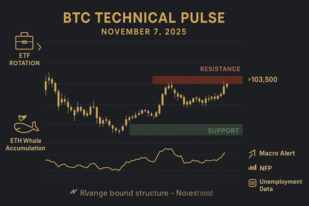 BTC: Holding above $100K support, struggling to clear $103.5K resistance.