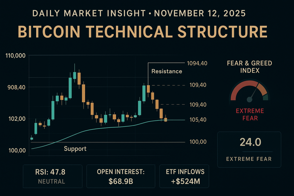 1. ETF Flows: Relief or Mirage?After nearly $3B in cumulative outflows, U.S. Bitcoin ETFs snapped their losing streak with $524M in net inflows on November 11. BlackRock’s IBIT ($224M), Fidelity’s FBTC ($166M), and Ark’s ARKB ($102M) led the charge. Sustained daily inflows above $100M could be the lifeline bulls need to regain momentum — but without follow-through, price recovery remains fragile.